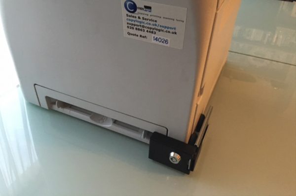 Locks can be keyed alike or differently and we can provide replacement keys, should you ever lose one. We also offer side lock kits to prevent unauthorised users from lifting the printer off of the paper tray to gain access to the tray contents. Our rear panel kits (PTL-ETC) block access to openings at the rear of some printers. Whatever the configuration of your printer or copier we can supply a security solution to prevent paper theft.